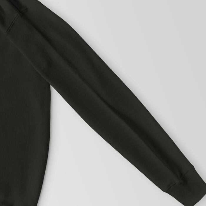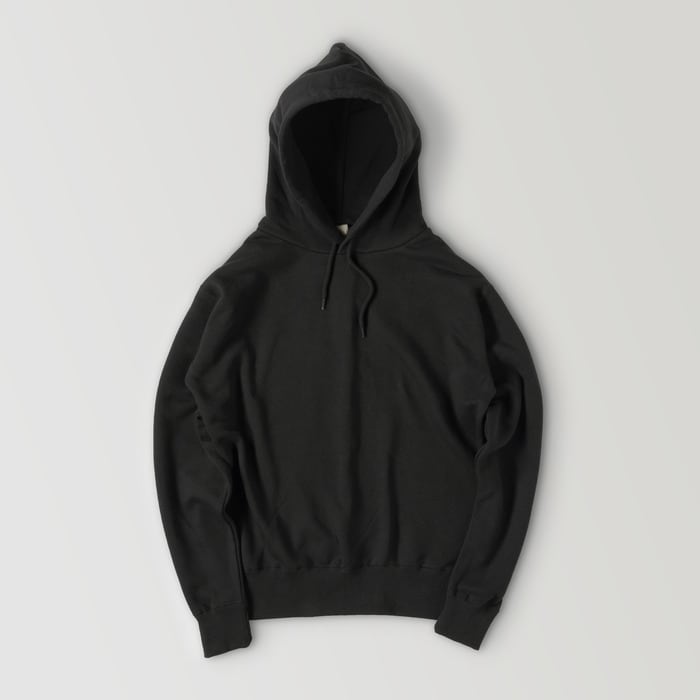 前面にポケットが付かないシンプルなデザインで、しっかりとした生地厚のパーカーです。