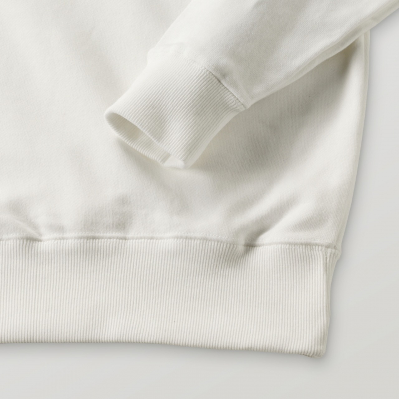 前面にポケットが付かないシンプルなデザインで、しっかりとした生地厚のパーカーです。