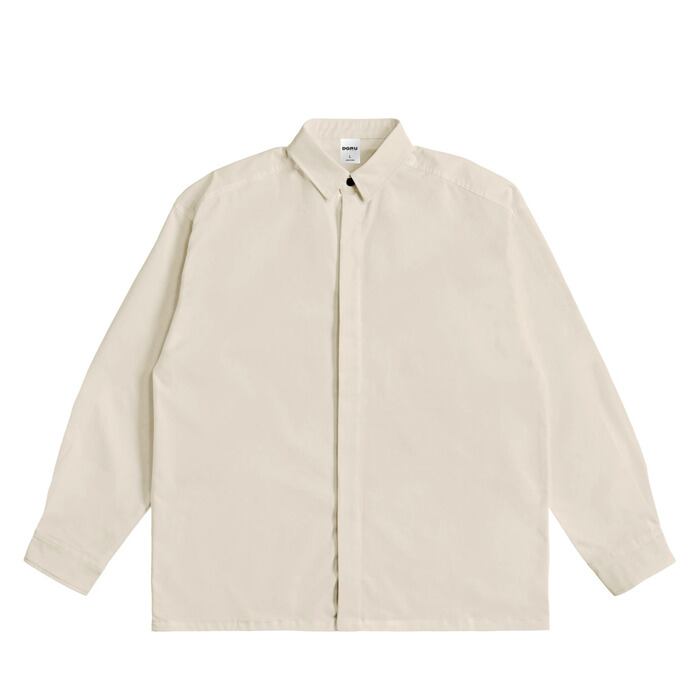 ミニマルで洗練された比翼仕立てにする事で余計な装飾を排し、極めてシャープでモダンな印象を実現しました。オーバーサイズ仕様でリラックスした着こなしが楽しめます。スラックスやデニムにタックイン/アウトするだけで、上品なカジュアルスタイルが完成します。