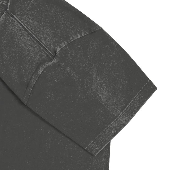 製品洗いによるダメージ加工を施すことにより、あえて着込んだようなフェード感を演出した Tシャツ。 縫い目のアタリやパッカリングがヴィンテージ感をプラスしています。